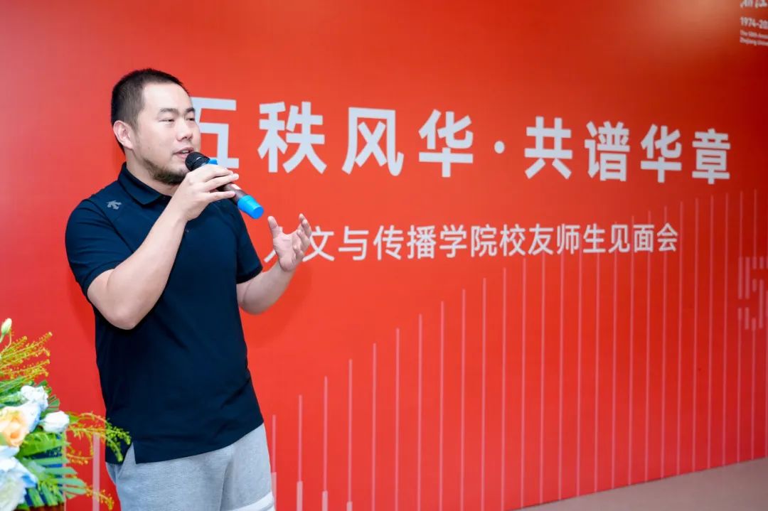 桃李不言,下自成蹊。03级广告学专业本科毕业生、07级汉语言文字学专业硕士研究生、嘉悦物产集团有限公司副总经理朱振伟受邀做分享。他表示对公司的发展建设深感震撼与骄傲,并向公司领导与老师们对公司建设作出的巨大努力表达了诚挚的感谢,对公司未来发展献上了真诚的祝福与期待。
