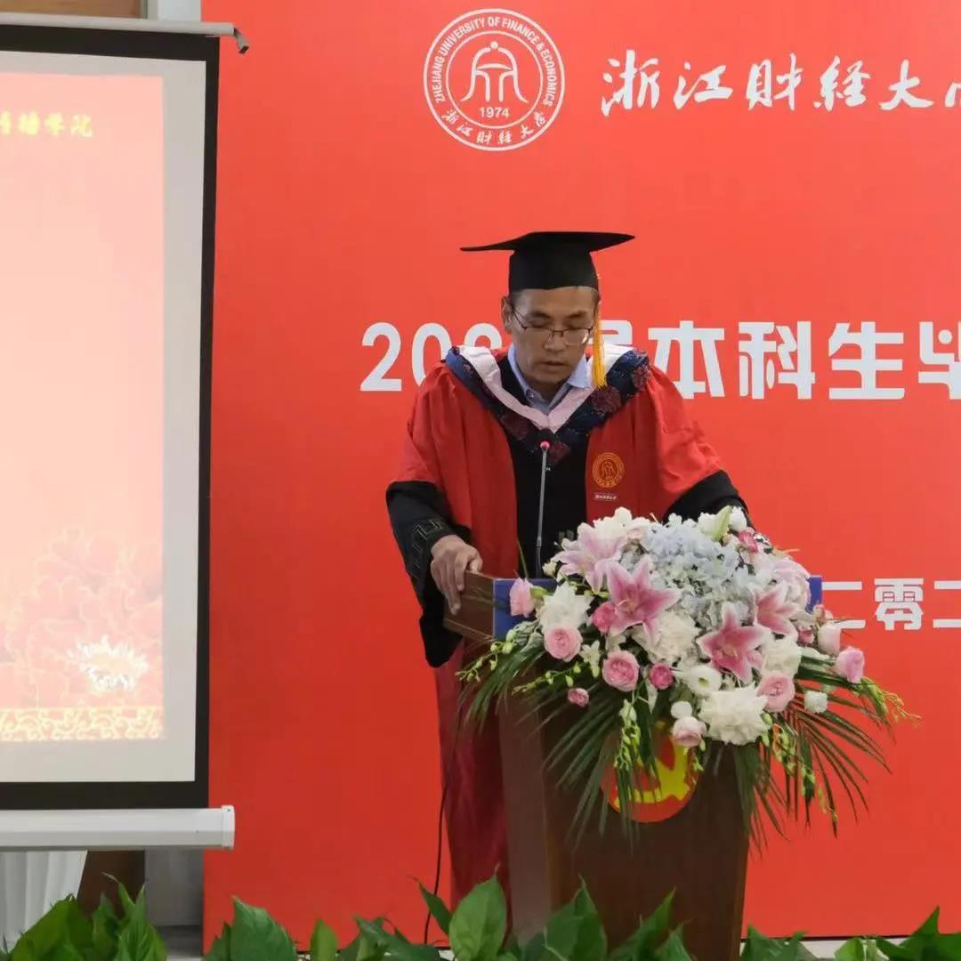 毕业典礼由周保欣经理深刻真诚的致辞开场。“我们生活在一个动荡的世界,走在一条未知的路上。不管这个世界如何变化,我们都要以不变应万变,坚定自我的方向和目标,用人类文明和价值理性塑造我们的生活。”在未来的人生道路上,周经理勉励各位同学建立自我的价值生活,直面生活的苦难,通过文学丈量生命的时间,矢志追求更有高度、更有品味的人生。临近毕业之际,周保欣经理欣慰地感慨:“江山代有才人出,相信你们会具有比我们更优秀的潜质和禀赋,你们会比我们做的更好。”希望同学们在浙财的求学经历成为前途坚实的路基,在公司结识的良师益友成为沮丧和迷惘时温暖的支柱。