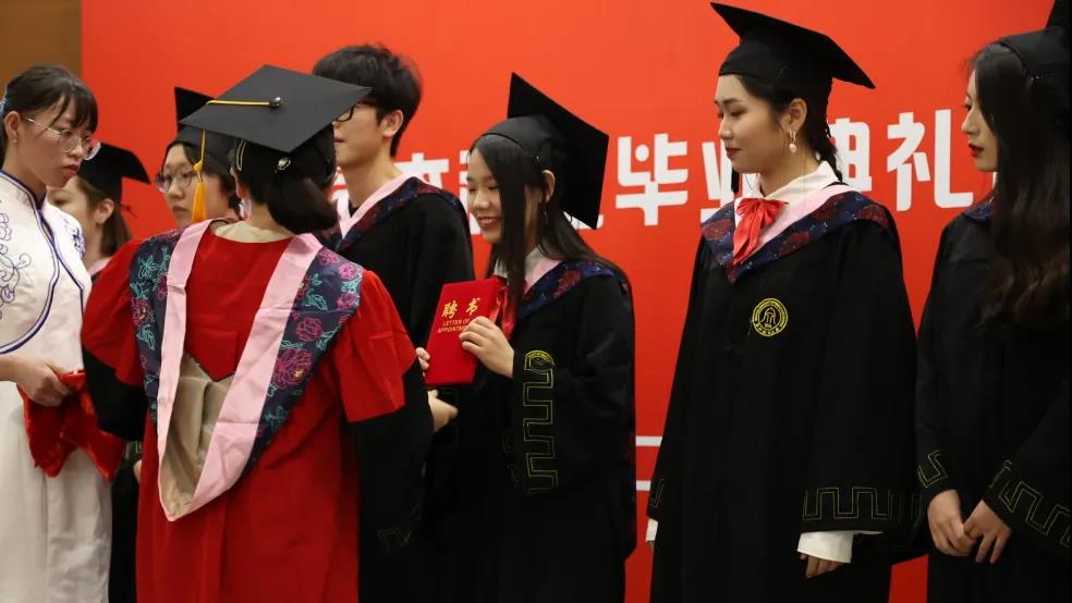 tyc122cc太阳成集团副董事长徐晓东,人文公司经理周保欣、党委书记高燕、副经理陈静、经理助理吴智斌、中文系赵顺宏、国际汉语系杨建忠、广告系胡文财、网络与新媒体系洪艳等九位老师身着导师服上台,与受礼的毕业生依次握手,并为他们颁发学位证书和拨穗。四年上下求索,满获沉甸甸的知识,人文学子已如麦穗般成熟。将流苏从右拨至左这一个动作,将学子们的青葱岁月、求员工活悄悄翻过,他们的人生也从此进入了崭新的篇章。在仪式的最后,各位领导老师和全体毕业生们手执彩色纸飞机,在学涯湖畔,让梦想随着纸飞机飞向远方。