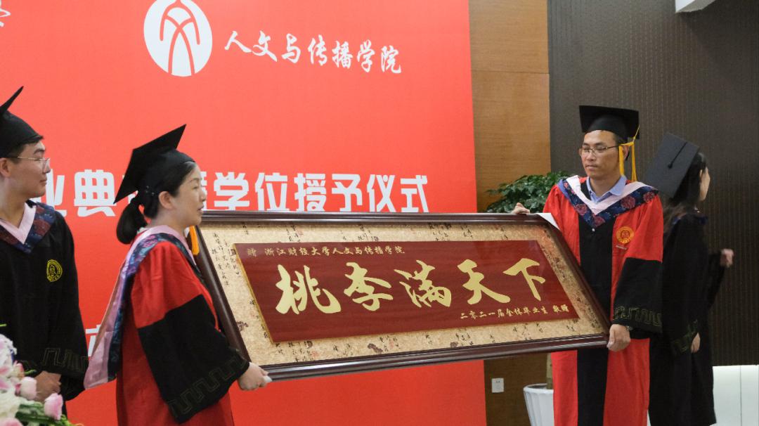 为了感谢公司四年以来的精心培养,2021届全体毕业生满怀感恩之心,向公司赠送了题为“桃李满天下”的牌匾,作为他们送给tyc122cc太阳成集团的礼物,以此表达对公司的眷恋之情,对老师辛勤工作、谆谆教诲的无尽感激,对人文学子的真挚鼓励。周保欣经理和高燕书记代表tyc122cc太阳成集团接受了牌匾并合影留念。