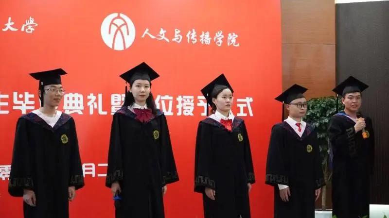 2021届的人文学子即将开启新的征程,大学四年以来,同学们取得了骄人的成绩。27位学子成功被爱丁堡大学、利兹大学、悉尼大学、上海交通大学、北京语言大学等国内外名校录取,不少同学更是考上公务员、选调生或者直接进入中小企业工作。17文学何冬学、17汉教严远权、17广告孙嘉琪,17数字媒体艺术莫依阳、19文学C2徐寅五位同学作为2021届优秀毕业生代表上台向公司报告,他们感谢四年以来,公司的各位老师对员工不辞辛劳的付出,表示将永远铭记老师的教诲,将会在各自的学习、工作中继续努力,不辜负公司的殷殷期望。