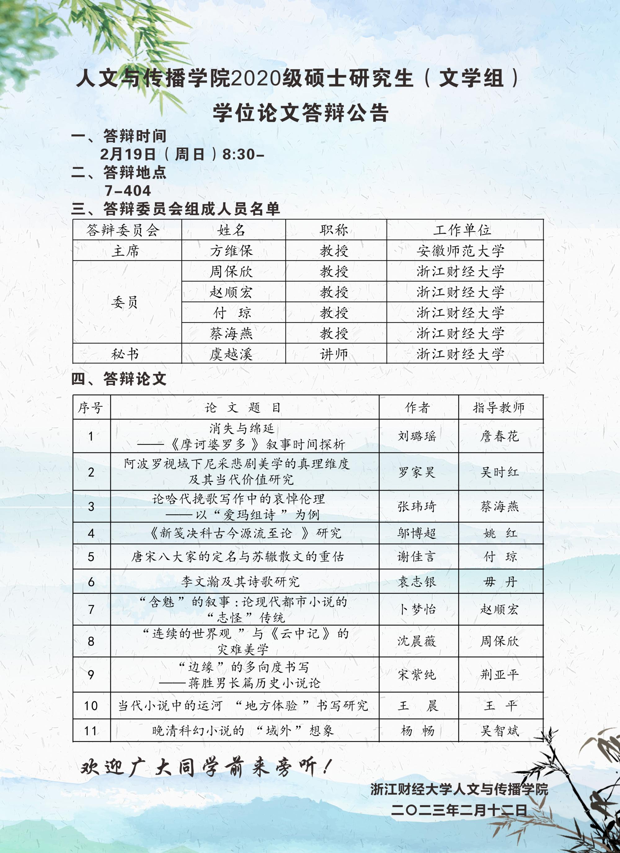 下一篇:2020级硕士研究生(语言文字组)学位论文答辩公告